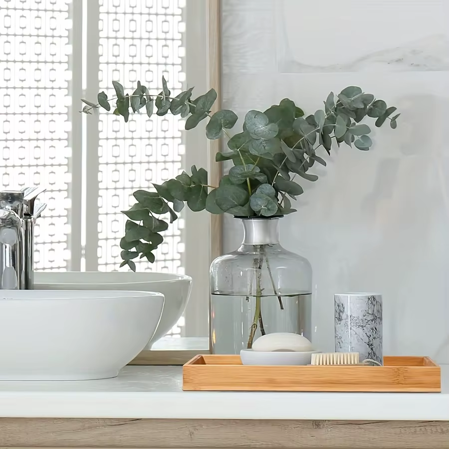 Fabricada em bambu ecológico e resistente, essa bandeja une praticidade e beleza em um design minimalista. Seja para organizar cosméticos e acessórios no banheiro, servir petiscos e bebidas com charme ou decorar sua casa com um toque moderno e natural, ela é a escolha perfeita.