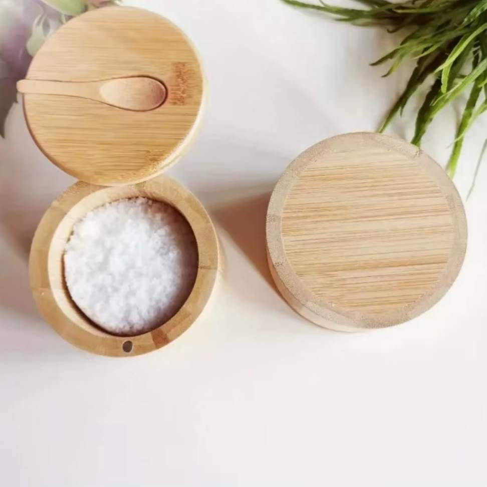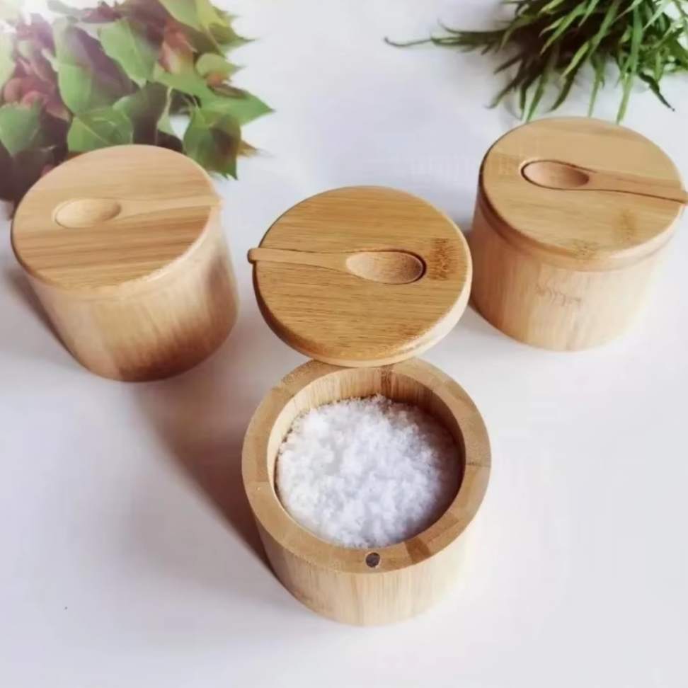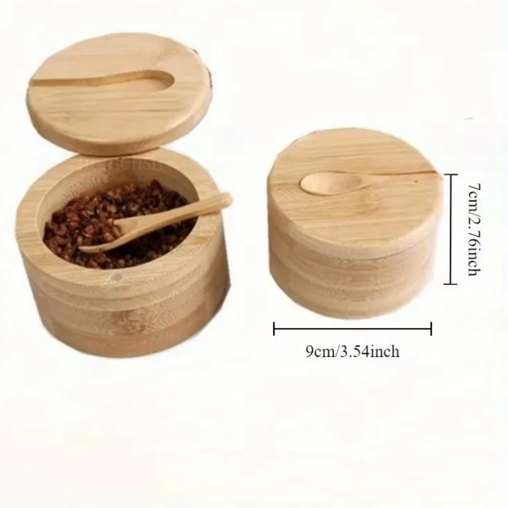 Caixa de Temperos em Bambu com Tampa Magnética e Colher – Organização e Charme Natural