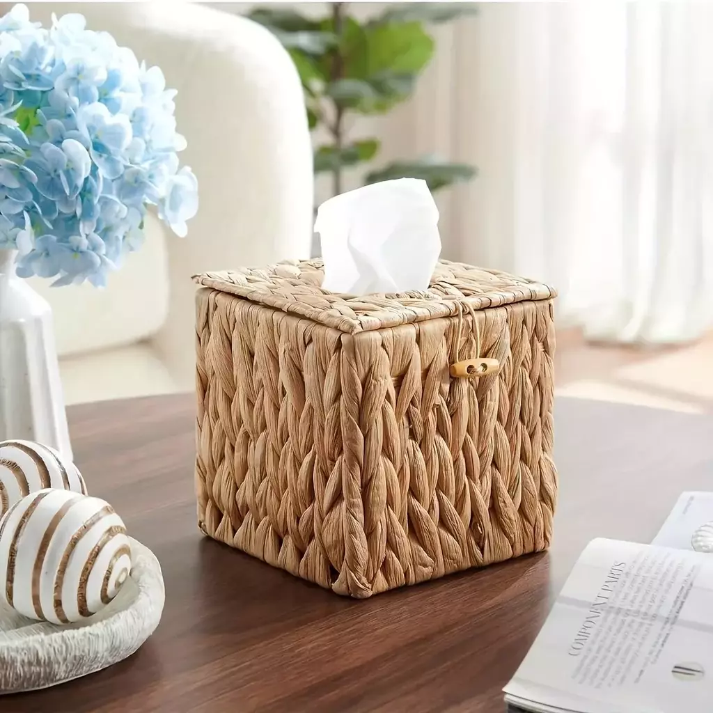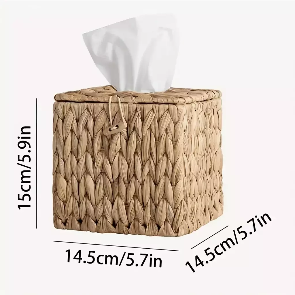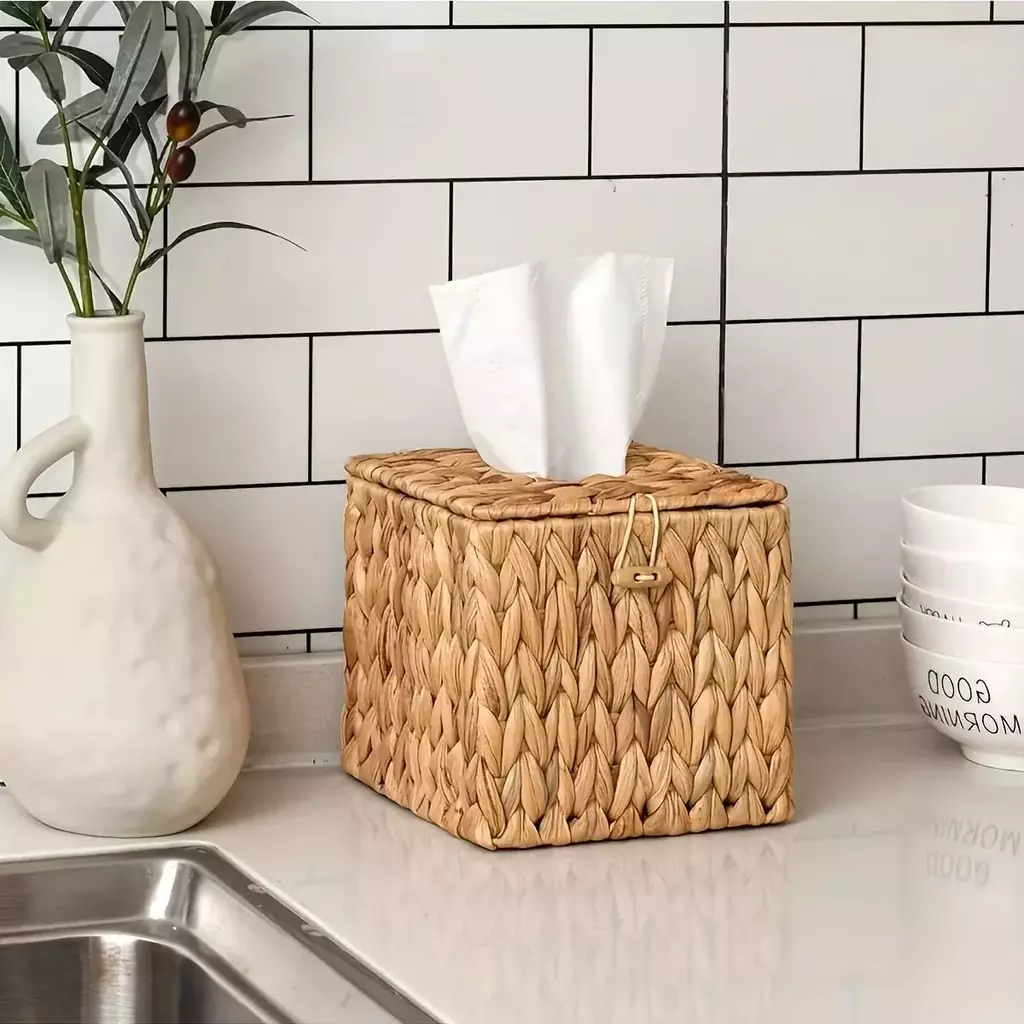Dê um toque de charme natural e descontraído ao seu ambiente com a Caixa Porta-Lenços Boho em Fibra Natural.
