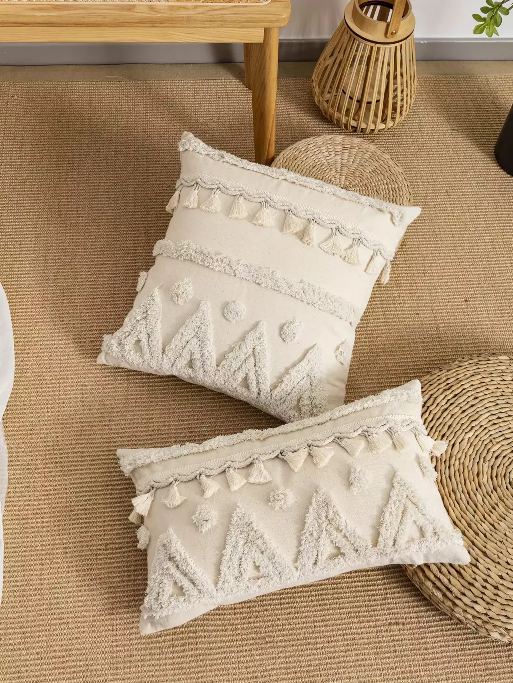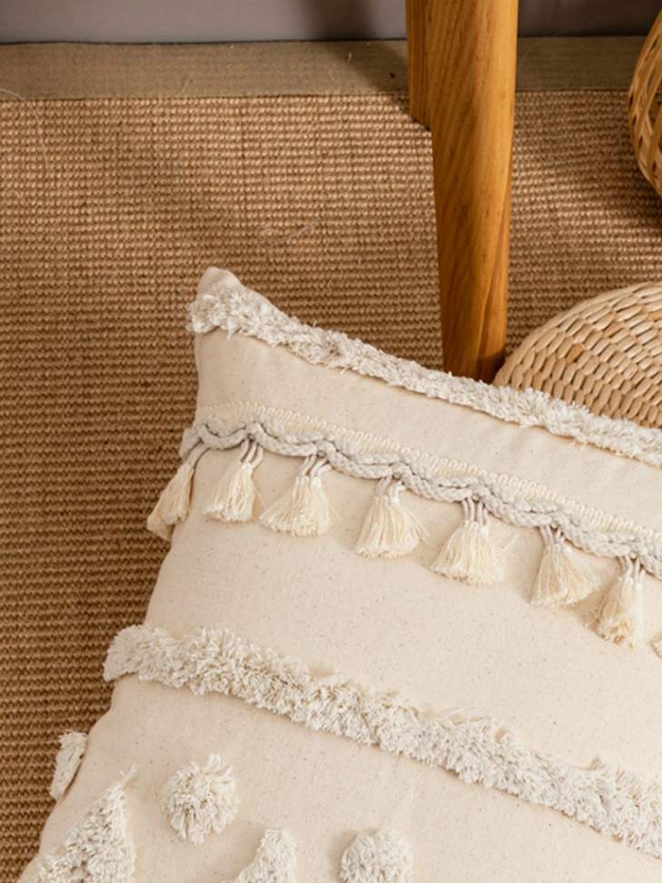 1 Capa de Almofada Bege com Borlas (enchimento não incluso)