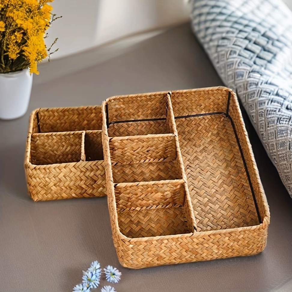1 cesta de armazenamento artesanal em ervas marinhas com 4 divisórias
