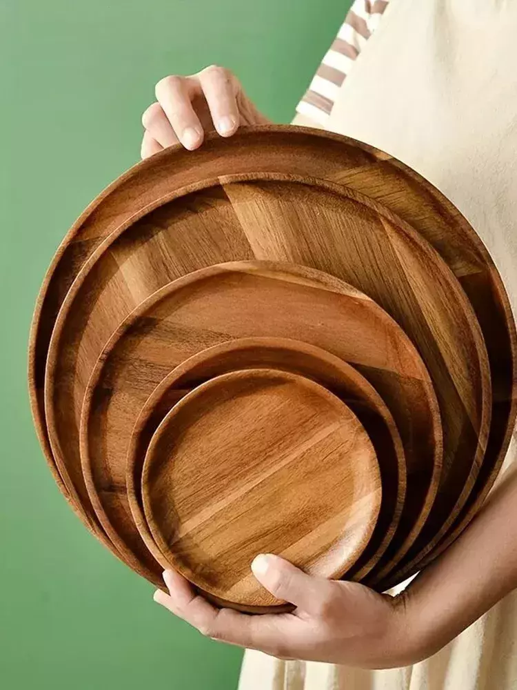Delicado, funcional e atemporal: o prato redondo artesanal em madeira natural é a peça perfeita para quem busca unir praticidade e sofisticação na hora de servir.